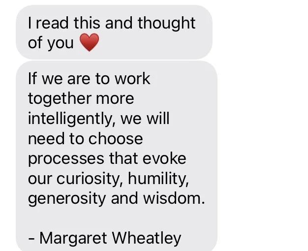 In both, you will notice a quote by Margaret Wheatly, generously shared with me and held close as a guidepost throughout the semester, from BeLoved Travis for whom I grateful.